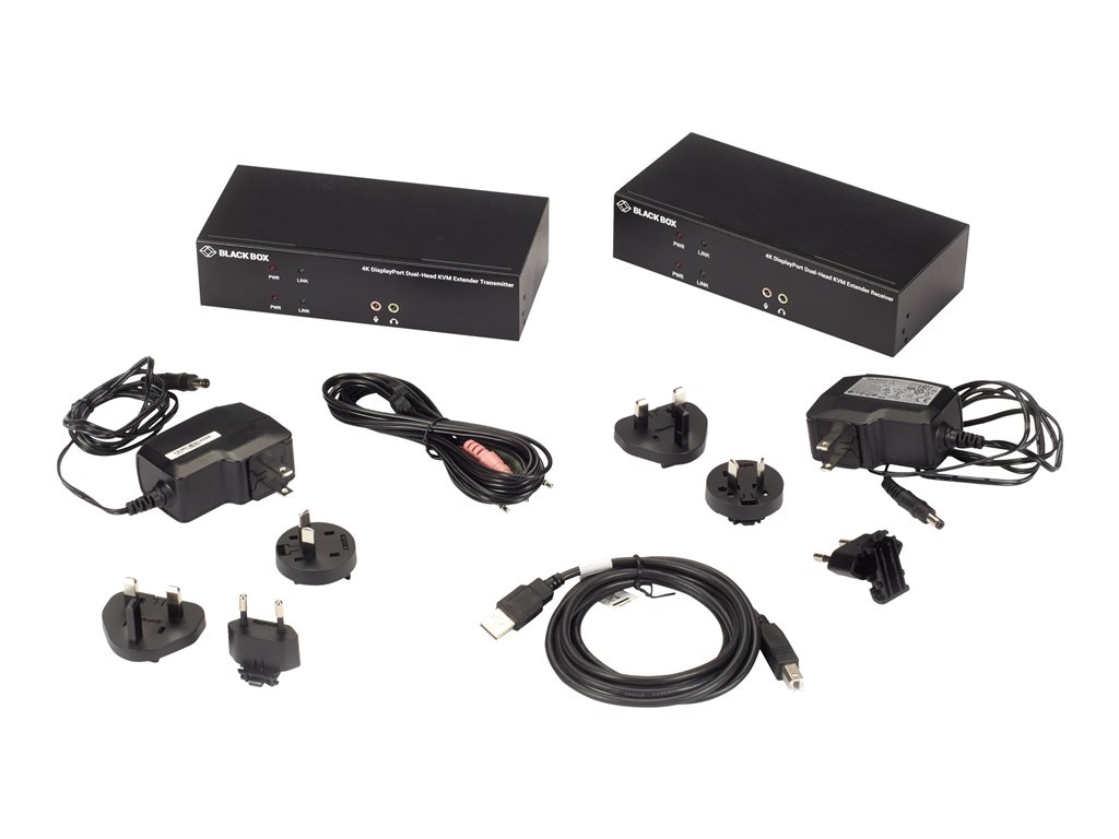 | Product Description | Black Box KVX Series KVM Extender over CATx - 4K, Dual-Head, DisplayPort, USB 2.0 Hub, Serial, Audio, Local Video - Extender Kit - KVM / audio / serial / USB extender |