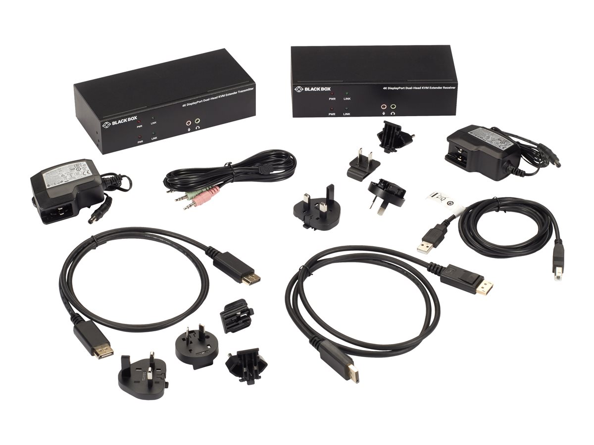 | Product Description | Black Box KVX Series KVM Extender over Fiber - 4K, Dual-Head, DisplayPort, USB 2.0 Hub, Serial, SFP, Audio, Local Video - Extender Kit - KVM / audio / serial / USB extender |